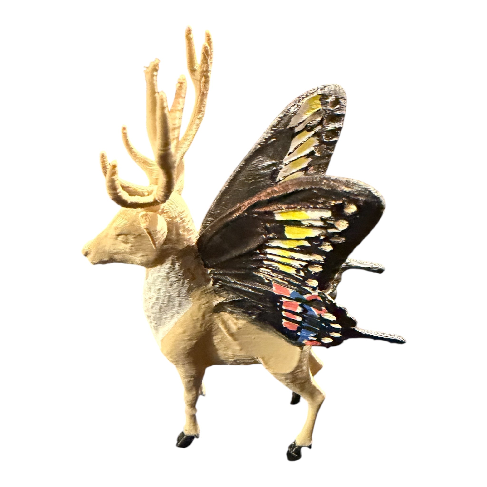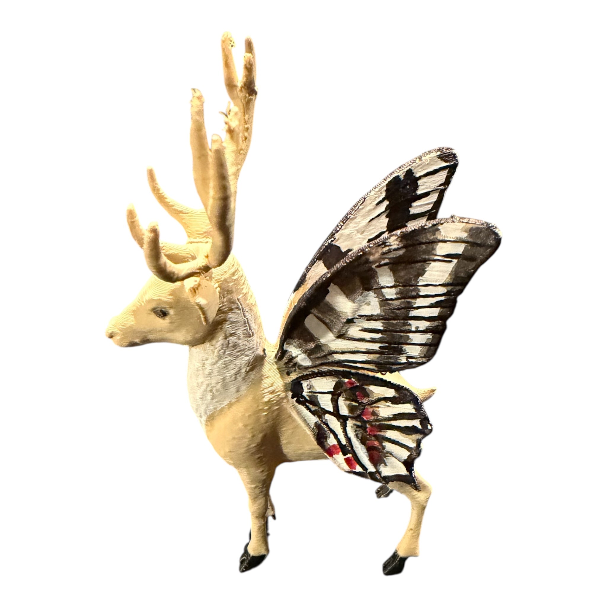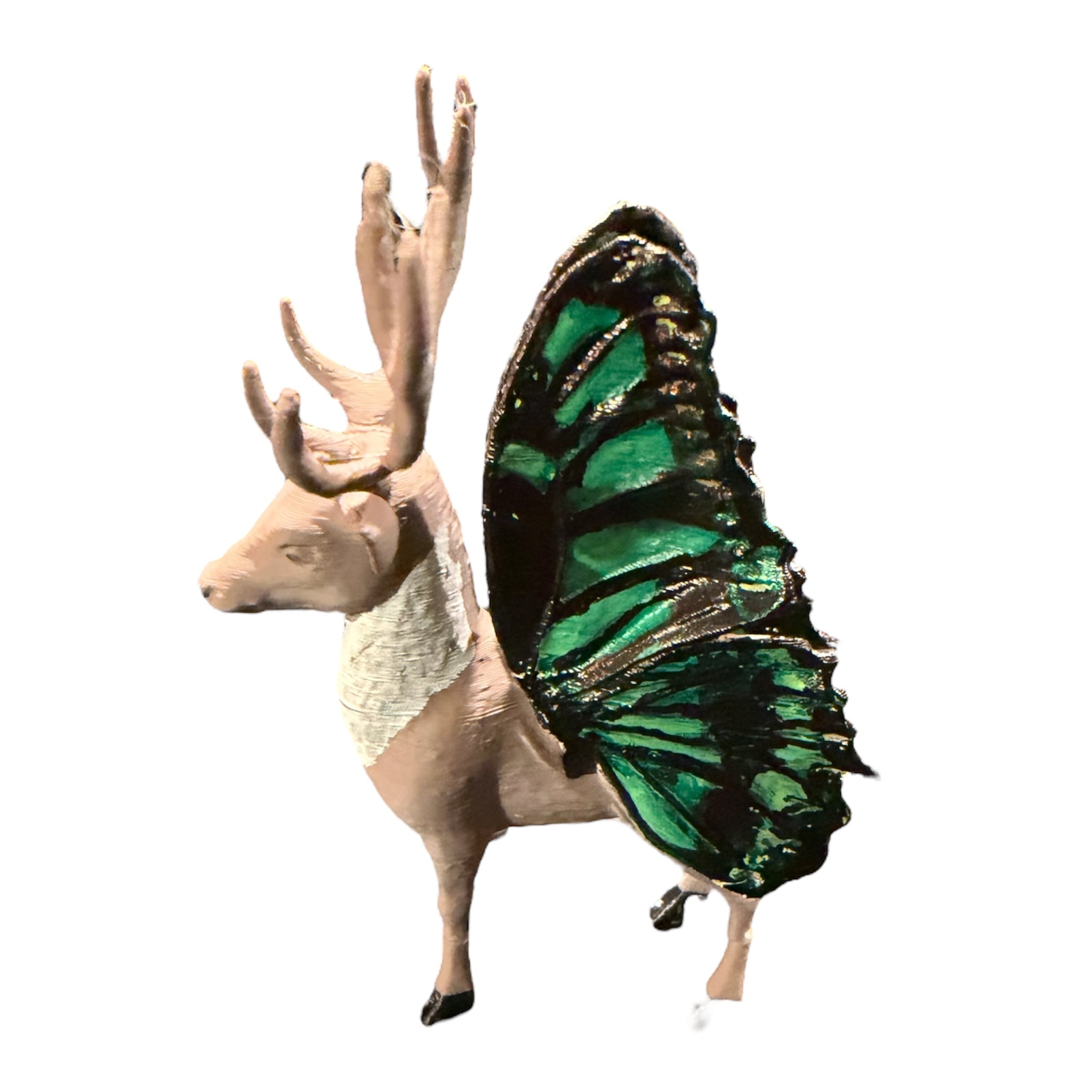 Hand painted 3D PLA plastic printed Santa and Reindeer. Beautiful Butterfly inspired Christmas Display featuring Reindeer with some of our favorite Butterfly wings.